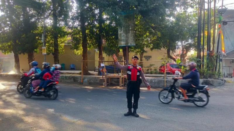 Untuk memberikan rasa aman bagi pengguna jalan, setiap hari sebelum apel pagi dan sore hari, personil Polsek Mlati Sleman melakukan pengaturan arus lalu lintas dengan menyeberangkan warga yang hendak berangkat ke sekolah maupun berangkat kerja.